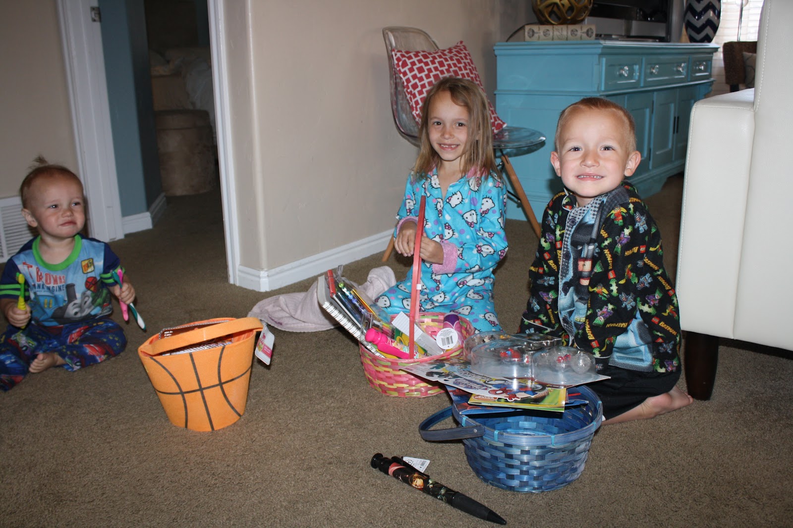 Since we didn't have school all week, my kids kept bugging me to let them have a "late night" (since we don't do sleepovers)...I set up little treats for all the kids, and they got to stay up late watching Hotel Transylvania. They loved it!